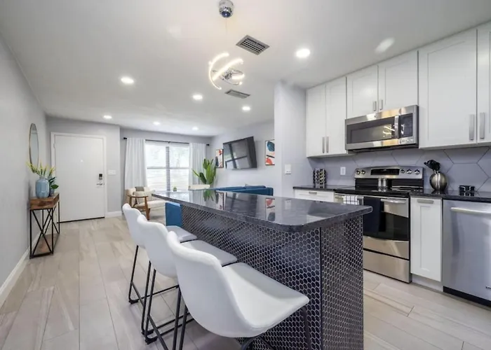 De accommodatie beschikt over een ingerichte kitchenette met een waterkoker, een koelkast en een oven. Gasten kunnen dineren in Burton's Thornton Park, binnen 1 km afstand van de 1-badkamer villa. Lymmo - Grapefruit Line busstation bevindt zich op een klein stukje lopen van Large 2 Bedroom With King Bed And Patio villa en biedt vervoersmogelijkheden in de omgeving.
